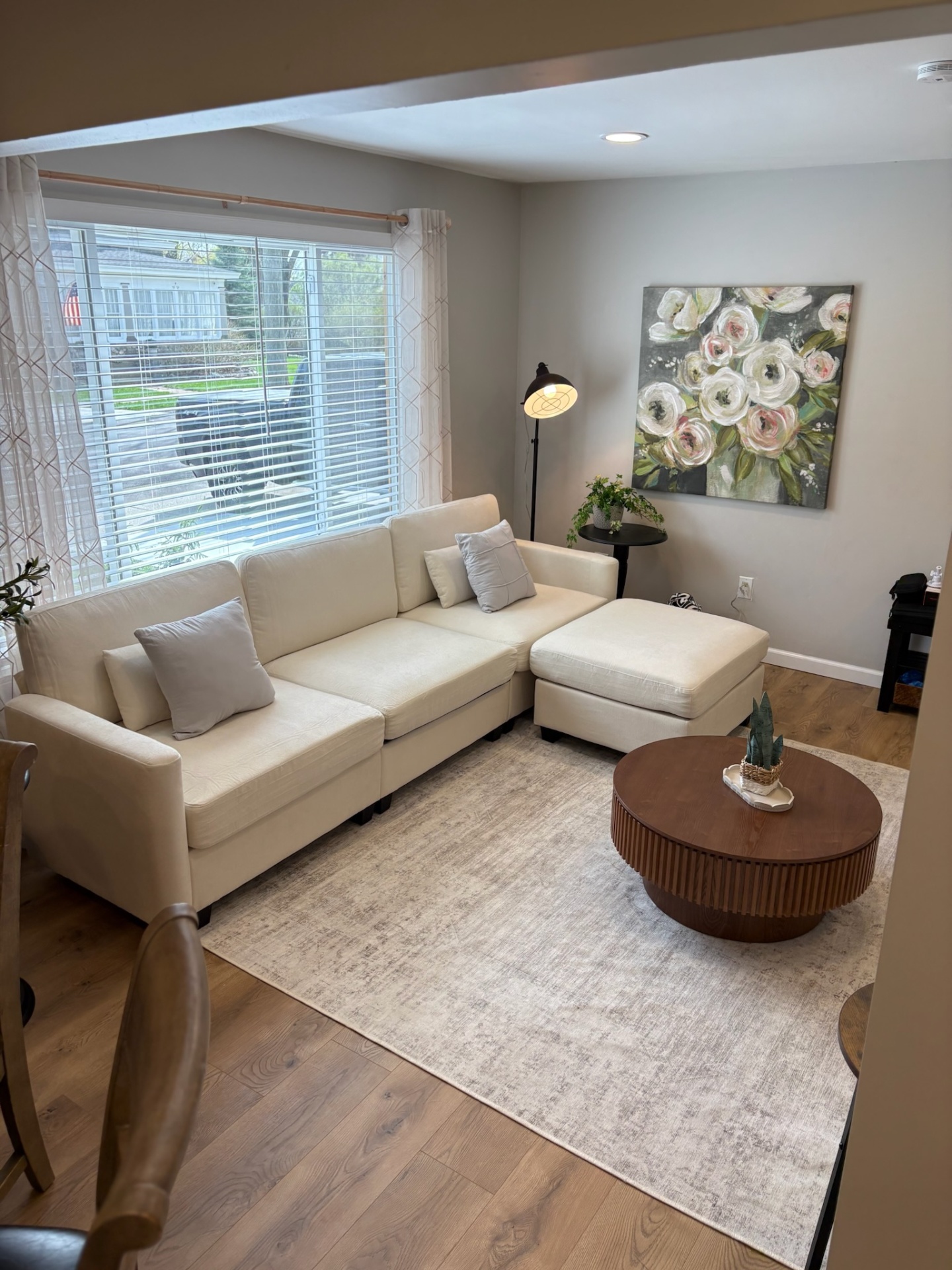 The South Suite features a bright, open main level with a comfortable living area, fully equipped kitchen, and dining space—ideal for relaxing or gathering.